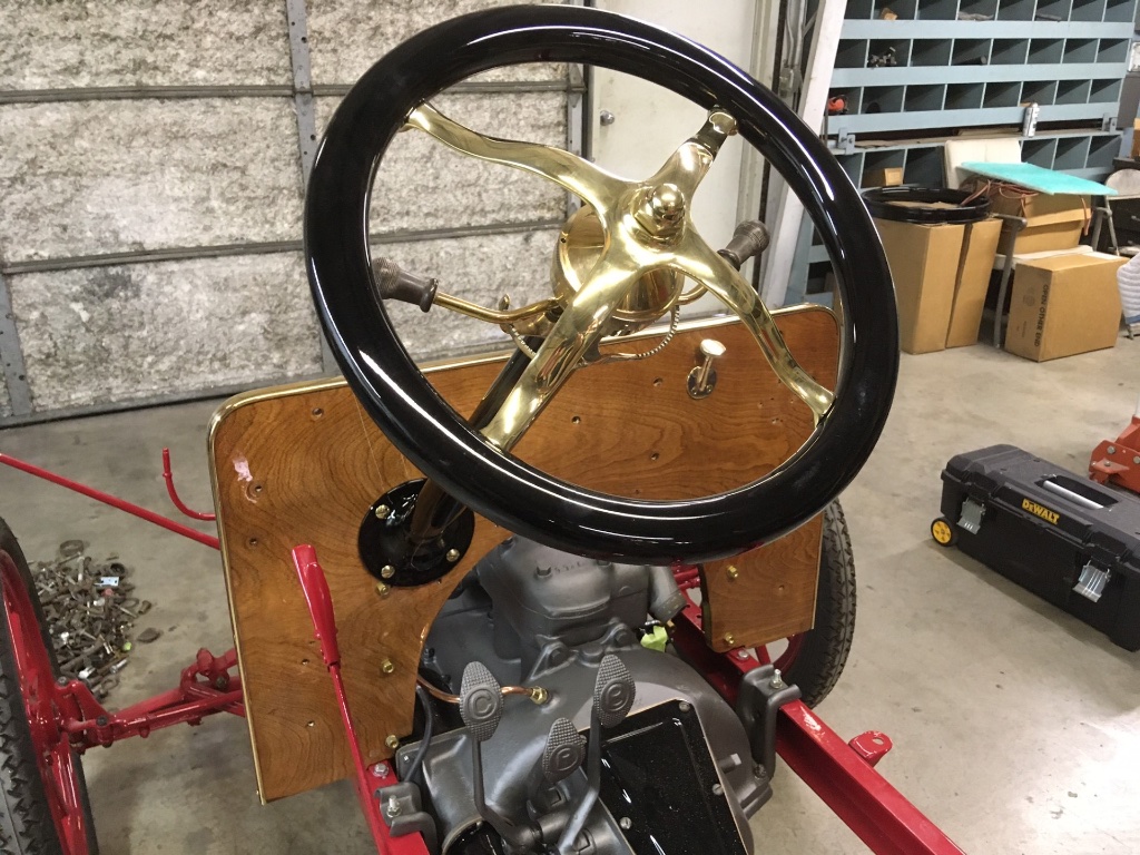 Is the body an original or new one? A 1910 wood covering or a 1911 metal over wood. The door pannels give the impression it may be a 1910 style. It does have a one peice spindle front axle and what seems to be a 1911 or 1911-12 rear end.. 1911 running boars are available reproduced. I see it will be tour vihicle. A great job on what will be good looking car.