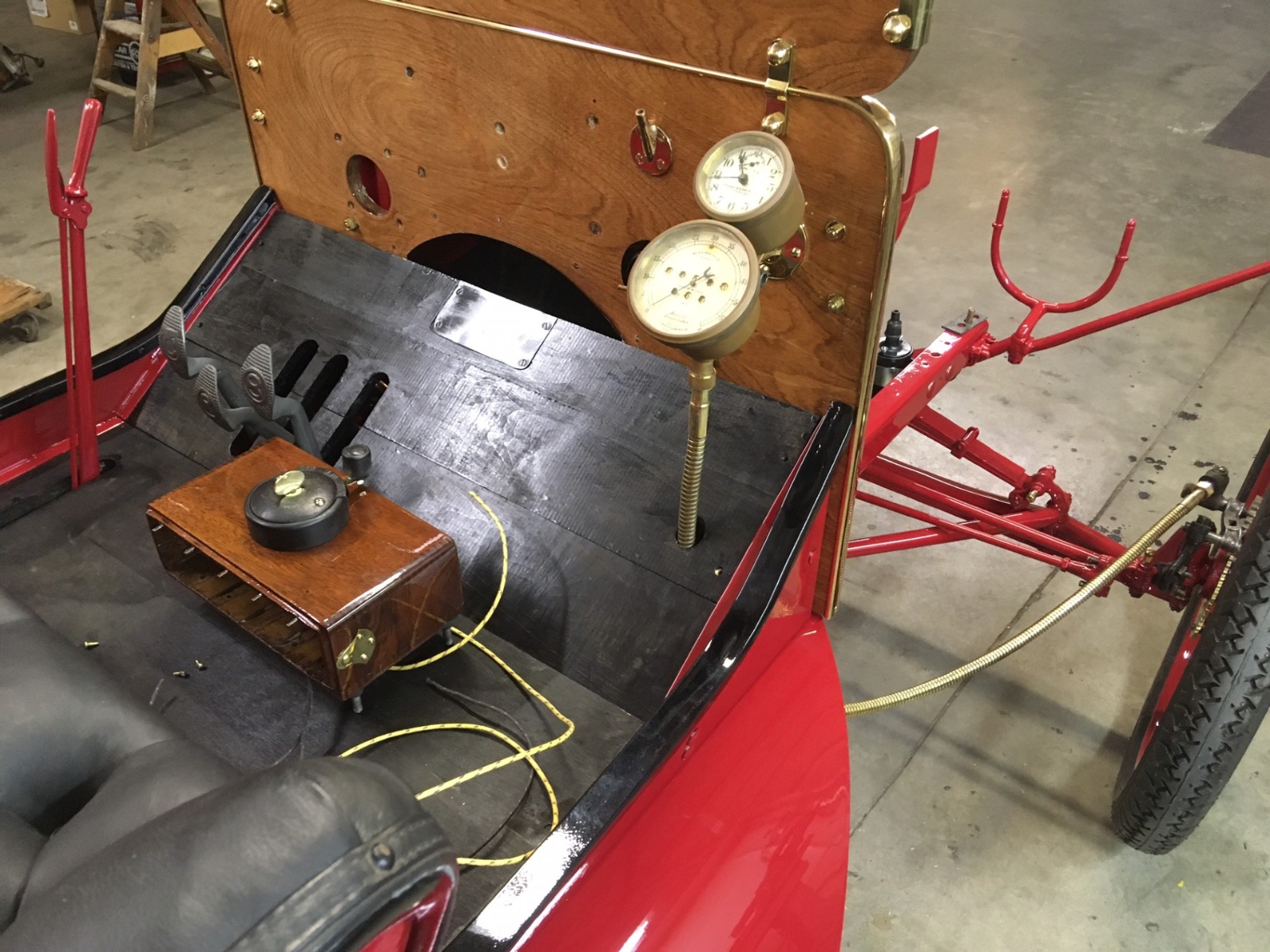 You’re right Larry. I looked at the bolt head a couple times before I moved on, but it fit the frame hole well enough that I really tightened down the spring U bolts and felt comfortable. I doubt this car is going on the Montana 500 or even unsaved roads for that matter. So now fitting floors, fitting speedometer assembly (had to bore hole thru finished splash apron for cable). And starting wiring.