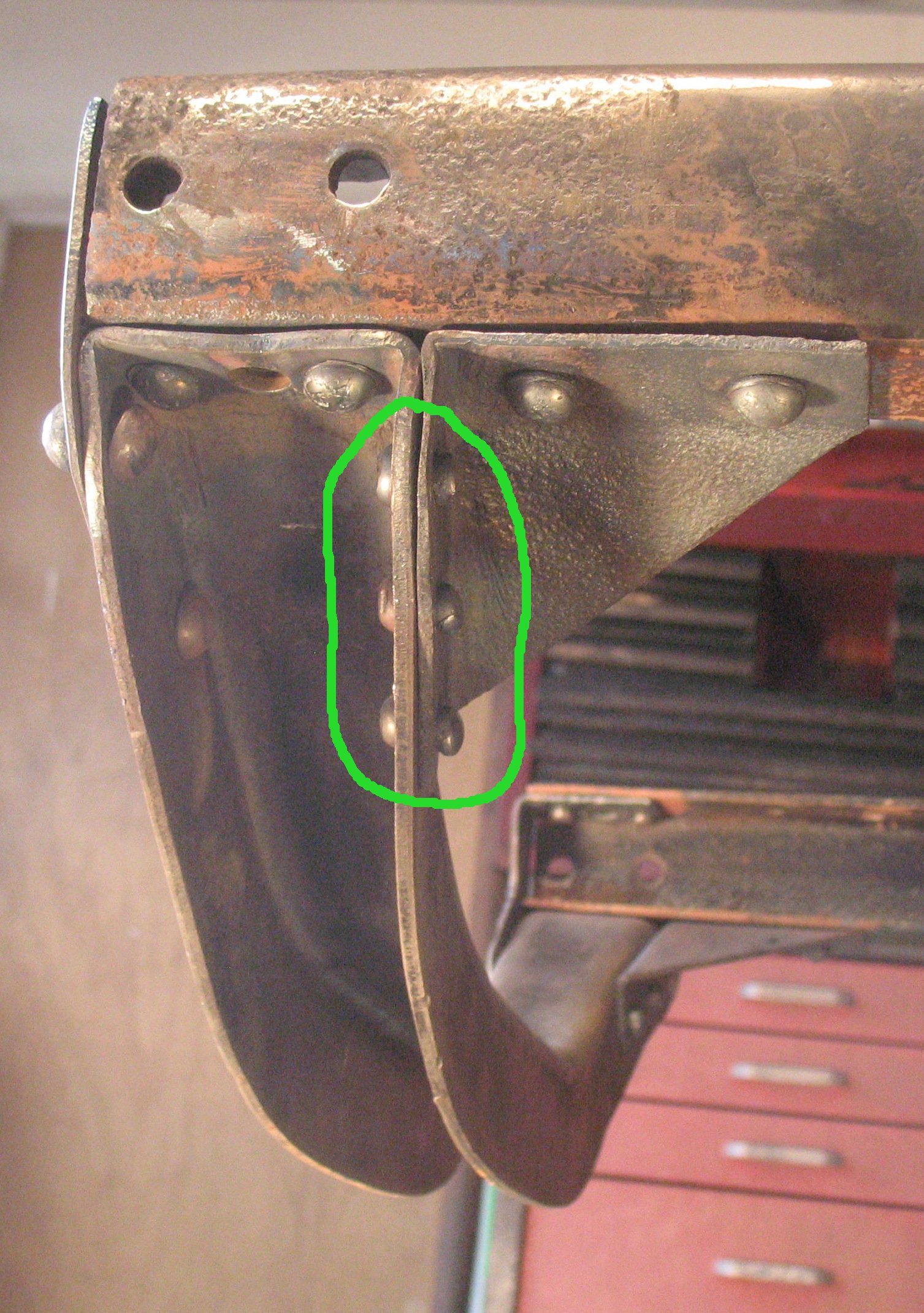 The front cross-member on my old rusty '20 is broken completely in half. I found a very nice one at a swap meets a couple weeks ago. Now the question is how to install the new one. I have zero experience riveting. A friend suggested turning nut heads in a lathe so they look like rivet heads. Looking for suggestions.