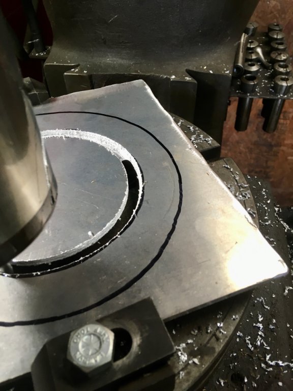 then turned the inner and outer dia in the turn table on the Bridgeport