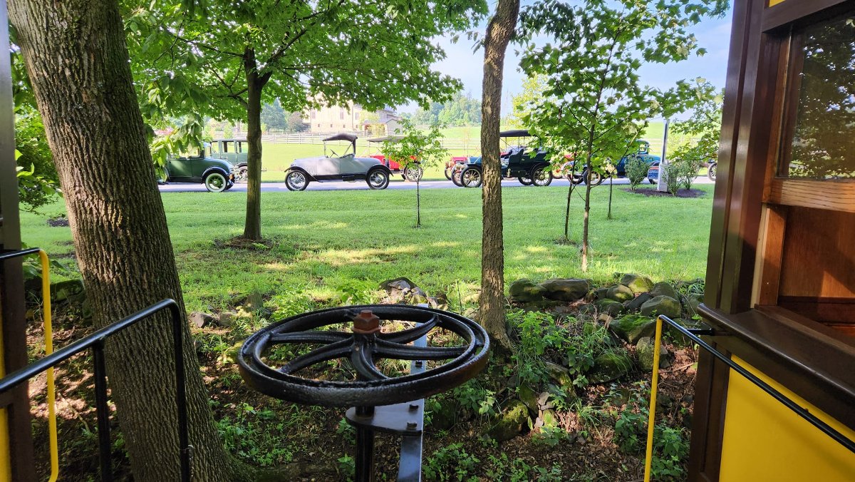 A novel idea for a tour, the entire event took place within the 275 acres that comprises the Stone Gables Estate in Elizabethtown, PA. After a train ride on a recreation of an 1800's engine and a tour of THE replica of the Lincoln Funeral Car, we paraded to the tour 'Parking' area, next to the world famous Star Barn, which was moved to and reconstructed on the Estate grounds a few years ago. Then we were on our OWN... to ride around several miles of paved roads, stoned roads, and muddy cart path trails complete with horse turds for period correctness (they have horses on site). It was a blast running my 1915 RPU with my father alongside, thinking that this must have been what the roadways were like 100 years ago when these cars were close to new!