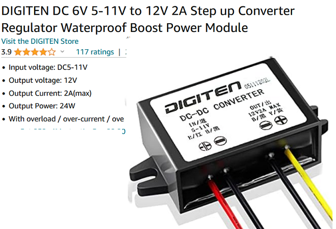 6v to12v boost converter with 2 amp output to drive sensors 4 amps