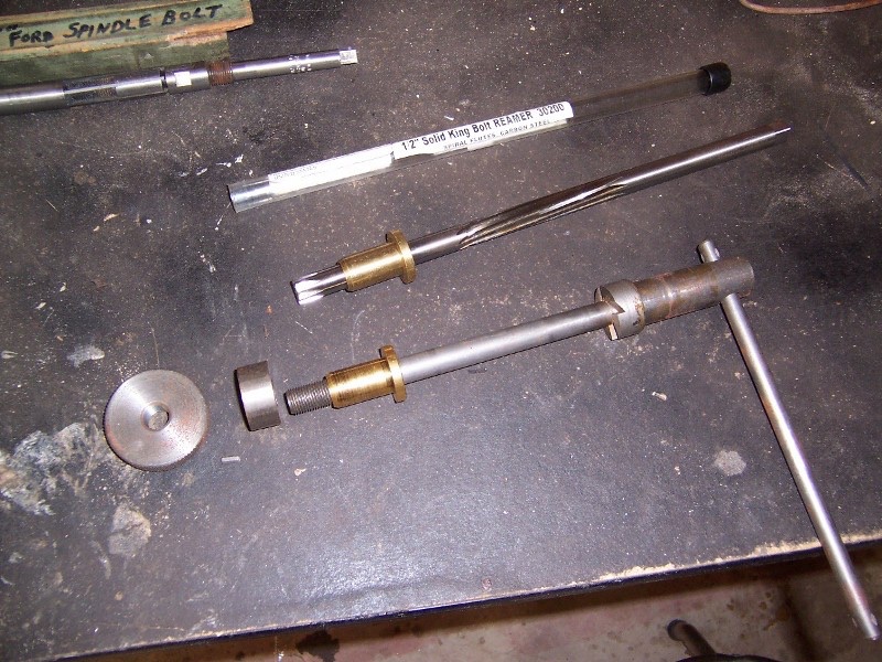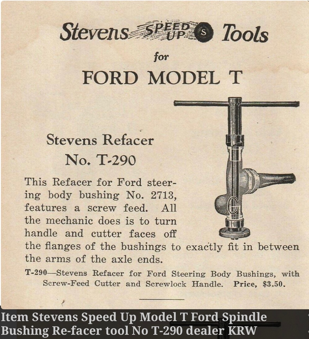 I use an original dealership tool. It works nicely. BTW, I only “face” the flange of the lower bushing so the spindle fits in the axle yoke. Why ??.. Because the entire weight of the front of the T rests on the top bushing flanges and I want the most ‘meat’ there.