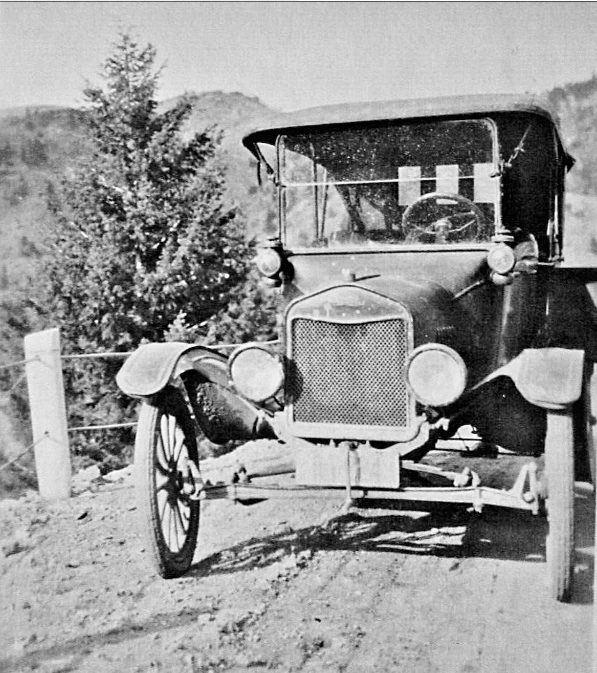 The square wood felloe wheels suggest 1918 or later, and I think 1918s mostly still had round felloe wheels. Uneven windshield hinges may eliminate an early 1917? And the square top sockets indicate about 1919 or later. However any or all of those things might have been changed to later parts if the car was in fact repaired.