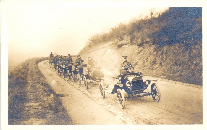 The last picture is of a convoy of early (1915?) chassis, presumably from the harbour in Le Havre to the workshop of Kellner in Paris.