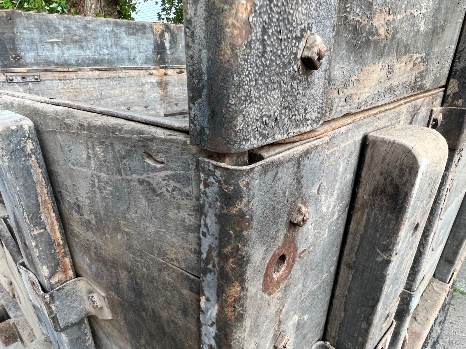 Condition wise the entire things is in sckingly good condition. there is surface rust for sure but no rotted holes in the floor and the uppers are near perfect except for some cracks in the rear door panels. as you mentioned cross chain wise, in some of the pictures you can see that when I got it an additional tier had been added on top. the skewer(for lack of a better description) across the front boards matches the others on the lower tiers and there was an additional full length board for the top tier at the back. so I suspect that was the original configuration for the body.