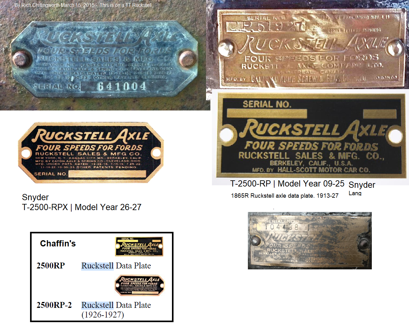 There are at least two versions of the common retangular data plate, early and late. The clipped corners plate was introduced when Eaton took over the manufacturing of the Ruckstell's. It can be found on small drum Ruckstell's as well as the big drum models.