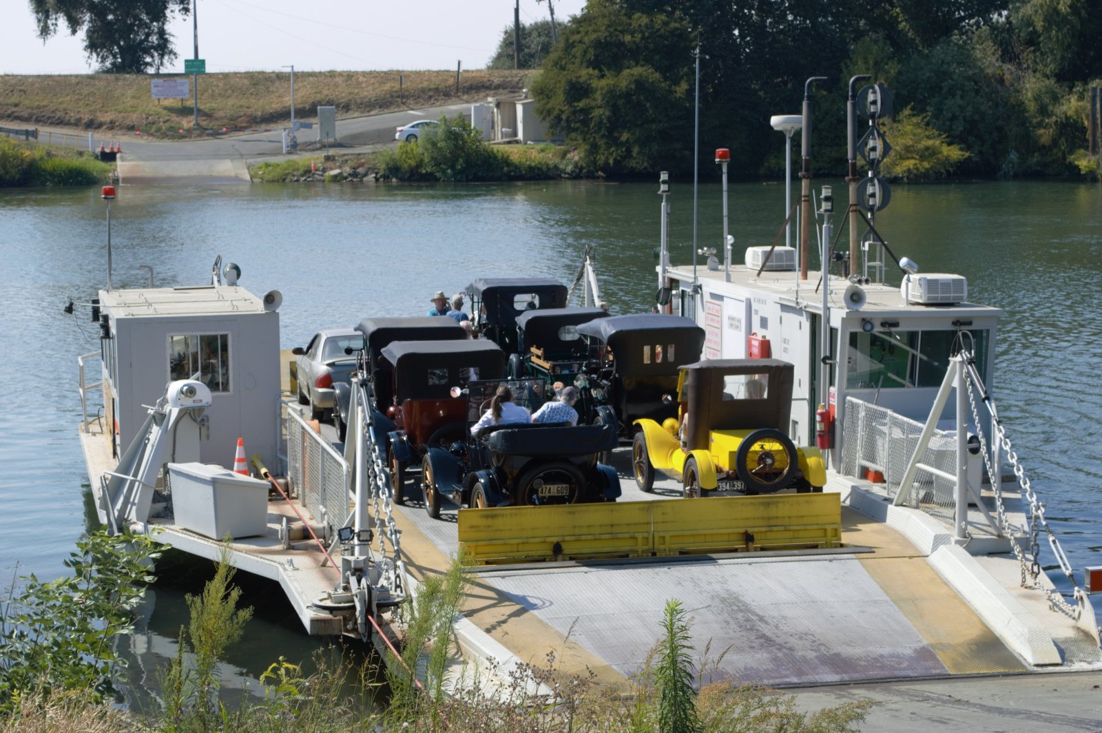 Here's a bunch of Redwood Empire Model T Ford Club members on a little tour in the Sacramento delta last weekend. This is a cable operated car ferry. Why?? To get to the other side!