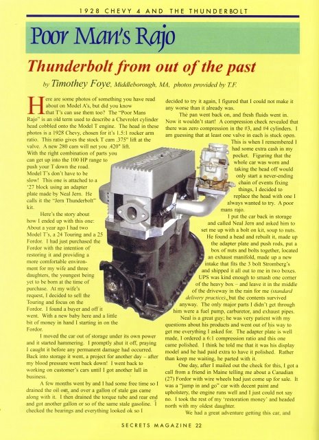 I wrote this article for Secrets Magazine in March of 2007. I ended up building the engine. No one bought it! Then the low speed drum in the stock engine in my Fordor broke and the decision was made. In it went. Here's a video of it running. https://youtu.be/U9lxPfjBSOs