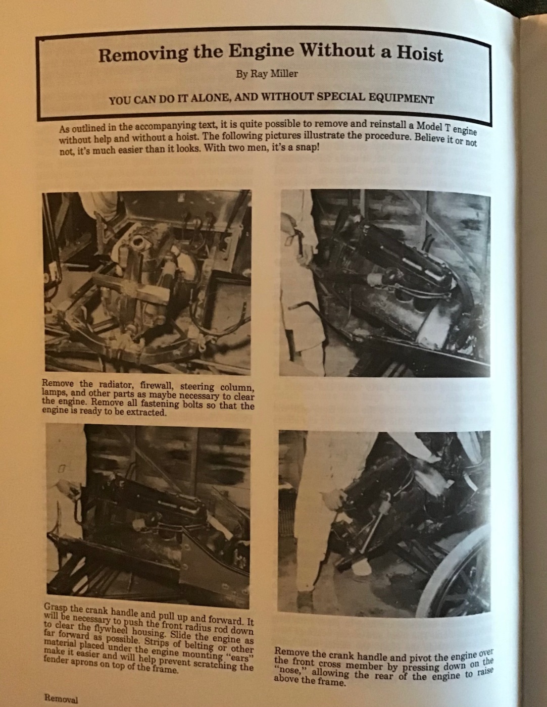Leave the hogshead on! Take the brake and reverse pedal off, it's not that hard to do, you'll be surprised at how much easier that makes things. Then get one of those engine "balance" things with the crank on it and practically stand the engine up like a 70% angle and out it'll come! I done it twice already! Good luck Tom.