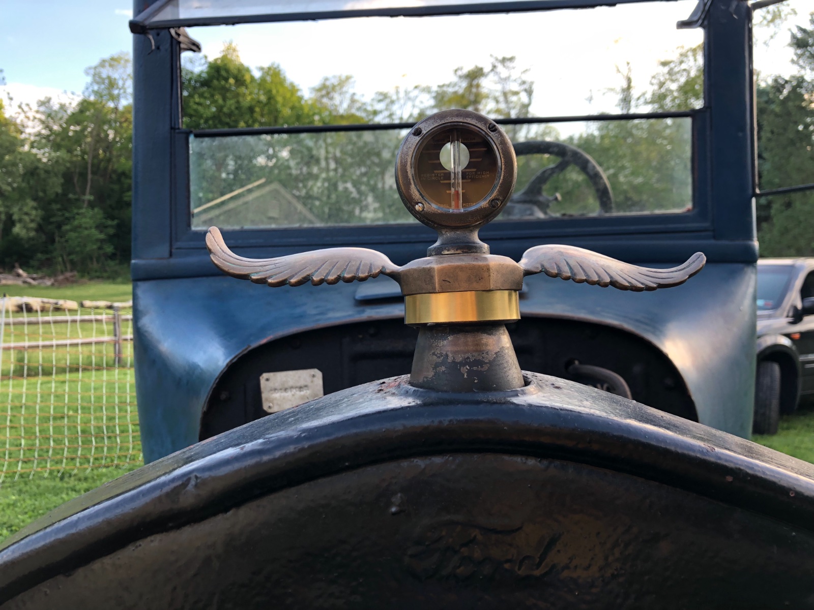 And yes, the bird's wings are supposed to face forward as in flight! And Motometers are supposed to be seen and read from the driver's seat, ALWAYS! It annoys me to see dealers listings trying to sell cars with Motometers on backwards. They claim to be "knowledgeable", yet don't understand that a backwards Motometer would only tell a driver why he just toasted his motor after it has quit, and he steps out to read it from the front of the car. The whole POINT of a Motometer is to warn the driver of trouble before the engine is destroyed.