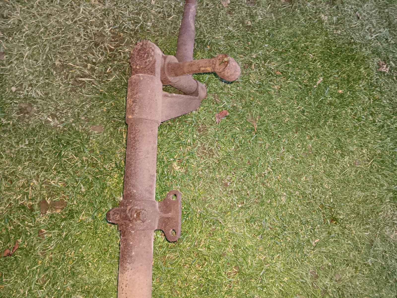 SOLD!!!!!!!!!!!!!!!!!!!!!!!!!!!!!!!!!I have this axle that Ive been told is for a Ford performance chassis. The spring perch pads are adjustable by loosening a through bolt and slid them in or out for different width frames. Also the Camber is adjustable as the lower bushing seems to have a off center hole . There is a segmented adjustment washer that allows the king pins to be set for the camber desired. It came out of a old building with much more Ford T parts , so maybe this is infact what it is. Also it is setup for right hand drive but may be able to switch that. Mike West Livonia NY 585 738 1541 if anyone has any ideas or interest in the axle. More pictures available . SOLD!!!!!!!!!!!!!!!!!!GONE!!!!!!!!!!!!!!!!!!!!!!!!!!!