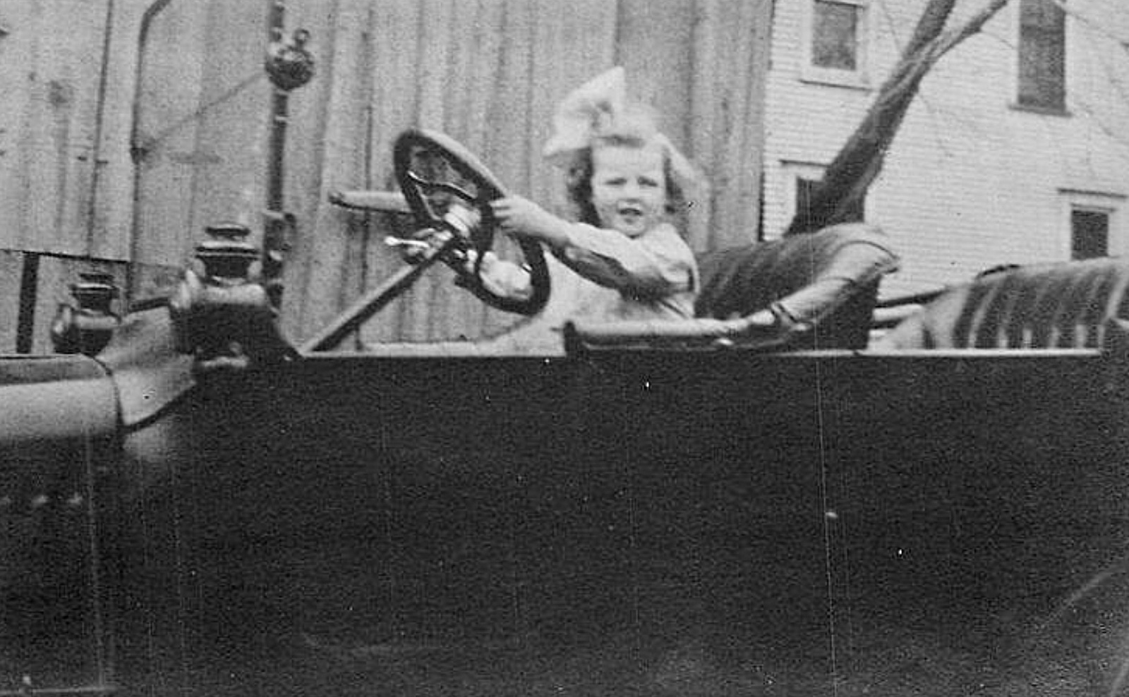 Car in the background indicates the photo is from the 50s.