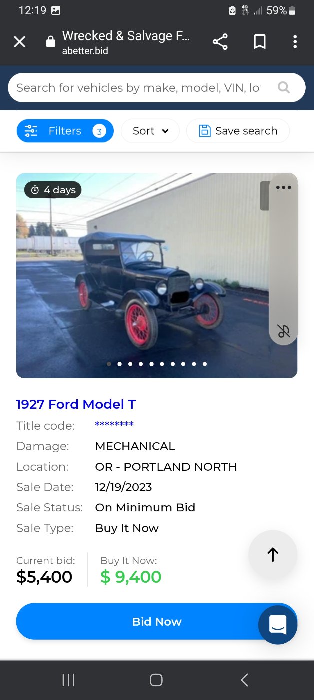 Found an interesting site that has some "wrecked" and salvageable model ts for sale on auction...
