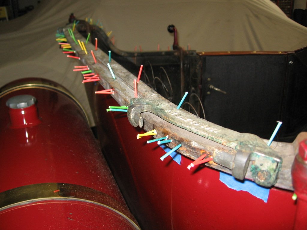 It goes pretty quick. We used a syringe filled with glue in some of the spots to get it back into the voids. Also used a spray bottle of water to dampen the wood as we went. Tape a sheet of plastic onto the body to catch any drips of glue. We broke each toothpick in half.[image]