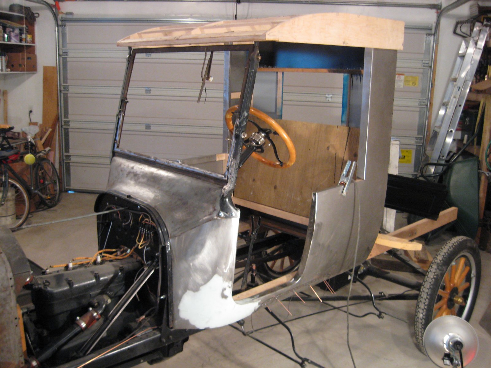 it was a cut off touring, but the wood was all rotten and the metal unsalvageable (by me anyway) so I built a cab for it. I plan to make a wooden pickup box at some point. I've been slowly hacking away at the body since bodyworkl isn't my forte, but I like making what I can. here's the repair of the drivers splash apron. I know I could just buy one, but what's the fun in that!