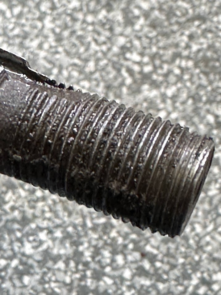 in bad shape & should be replaced. Pic #3 threads are damaged at the end, the reason for splitting a nut to chase the treads so the NEW nut