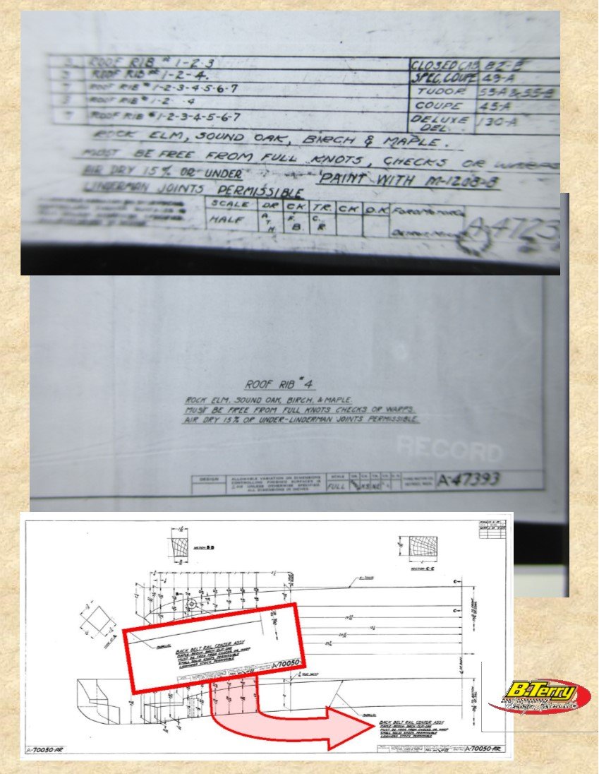 Two thoughts come to mind on this though. The early cars with outsourced manufacturers of bodies likely did have all kinds of wood species. Also, I have never seen M-specs dating back that far, so it is likely old Hank did not have his Q/C department in full swing to ensure the specified wood was actually being used. And, by later years, I think Ford's engineers just spec-ed anything that was growing in Ford's Forests as long as it resembled a hard wood. One of the loggers likely told the engineers what species they were cutting at the time and the engineer wrote that on the print!!