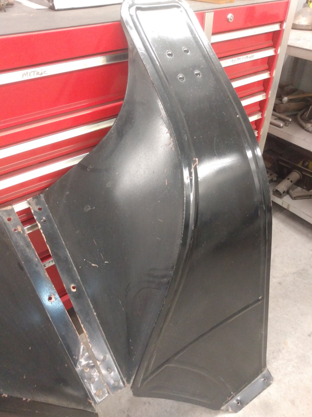 Probably 1950s or 1960s reproduction fenders. Maybe predating Rootlieb's taking over that business. Some of the other reproduction sheet metal vendors were not as conscientious and detail oriented as the Rootlieb family. We as hobbyists were very fortunate to have them take on the task of making replacements for many thousands of fenders!