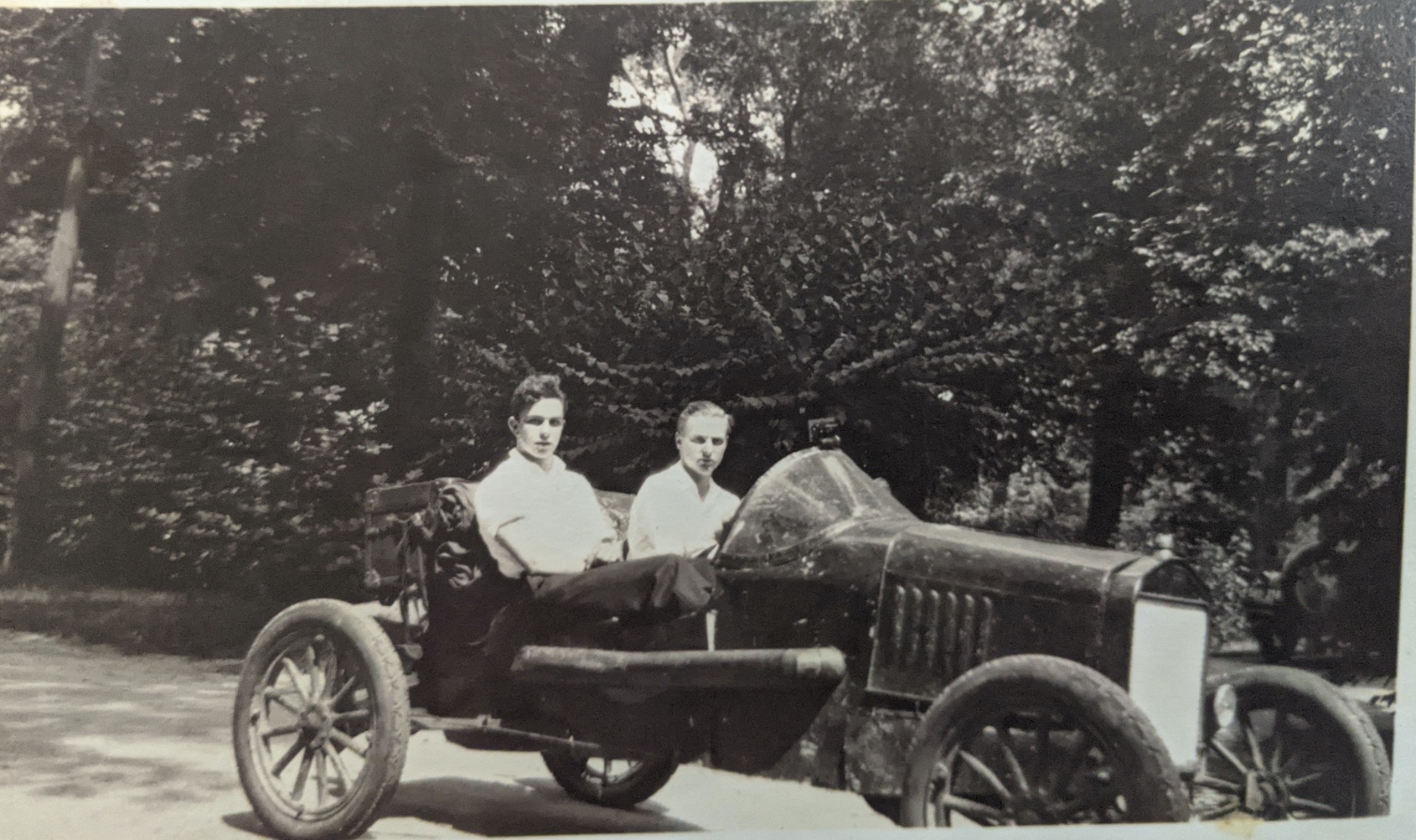 Beginning of summer of 1929 they drove from NE Ohio (where photos were taken) to the Bitterroot Valley of Montana, camping all the way with only heavy canvas sleeping bags, seen above the boat-tail. Beatie's father gave them a new set of tires for the trip, and Sterling remarked his dad told him those tires were worth more than the car...... what an adventure for these young guys.