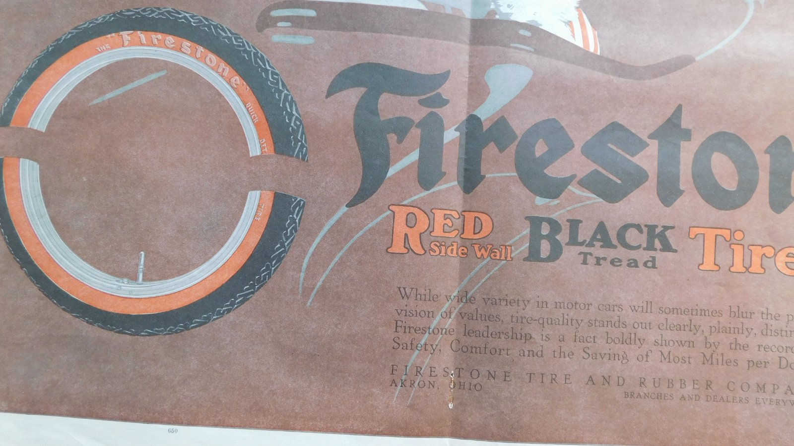 I am looking for a Firestone red sidewall tire for display. I have a 1916 building with the original ad restored on it. A lot of people have never heard or seen one. Here are ads from the mid teens to 1920. thanks, Bob. five07458677eight.