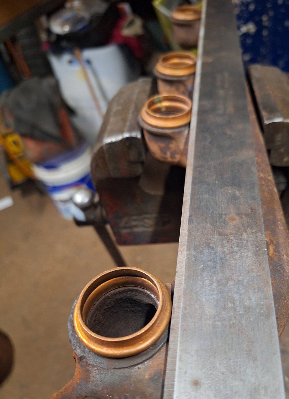 Allan, I completely understand your attempt to use the used manifolds we have and admire your ingenuity. From an economic standpoint and I realize shipping might be a bit pricey for you, but those copper upset seal rings I see you are using are $39 at Synders and the manifold is only a bit more than twice for $90. When I have exhausted my straight manifold supply I will probably order new. We are actually lucky to have them available, not as lucky with camshafts.