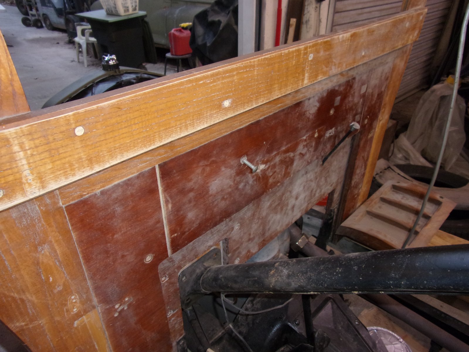 But here is today's challenge that I could use some insight from the forum members with. First two pics will be what the ambulance should look like. My issue is the cowl. It appears to have a metal cowl and possibly metal lower cowl side pieces, but they might be wood. I have a wood firewall that doubles as the hood support. It was attached to the depot hack windshield and both pieces were bolted to the firewall to frame brackets. I have the windshield frame mounted temporarily, but it will not stary. I was thinking of just building a squared off cowl plywood panel to hold dash switch, cowl lights and some sort of floor board supports.