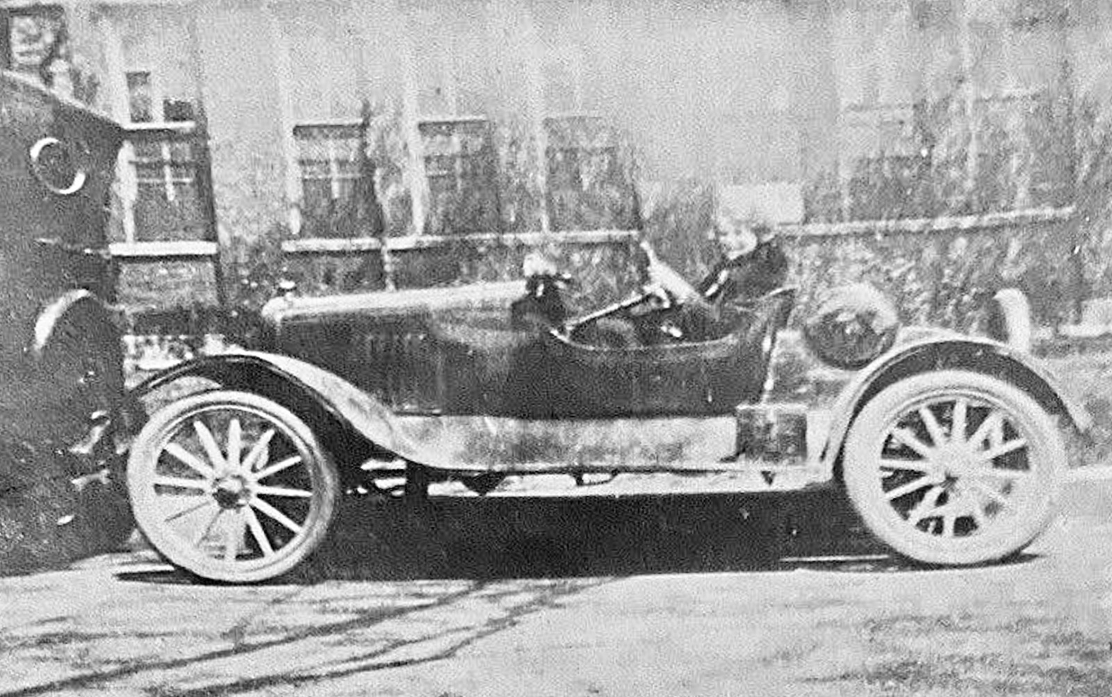 Number two is an unusually accessorized touring car. The even folding windshield suggests it may be a 1917, with electric sidelamps (looks like a battery box on the running board). A spot-light and accessory steering wheel can be seen. But what really stands out is the unusual top. Notice no upright sockets by the front seat as would be expected on a late 1910s touring car, and the unusual tiedowns pulling the top down in the front to the windshield.