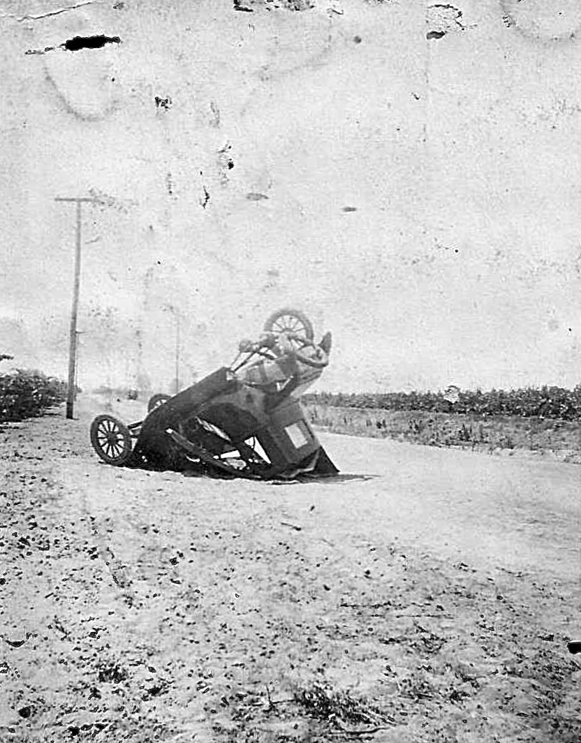 Unless he jumped out ahead of time the windshield glass and the steering wheel surely cut him up pretty bad. Just thinking about it I look at the torn up T’s and see how life was a 100 years ago. Maybe the driver turned out OK.