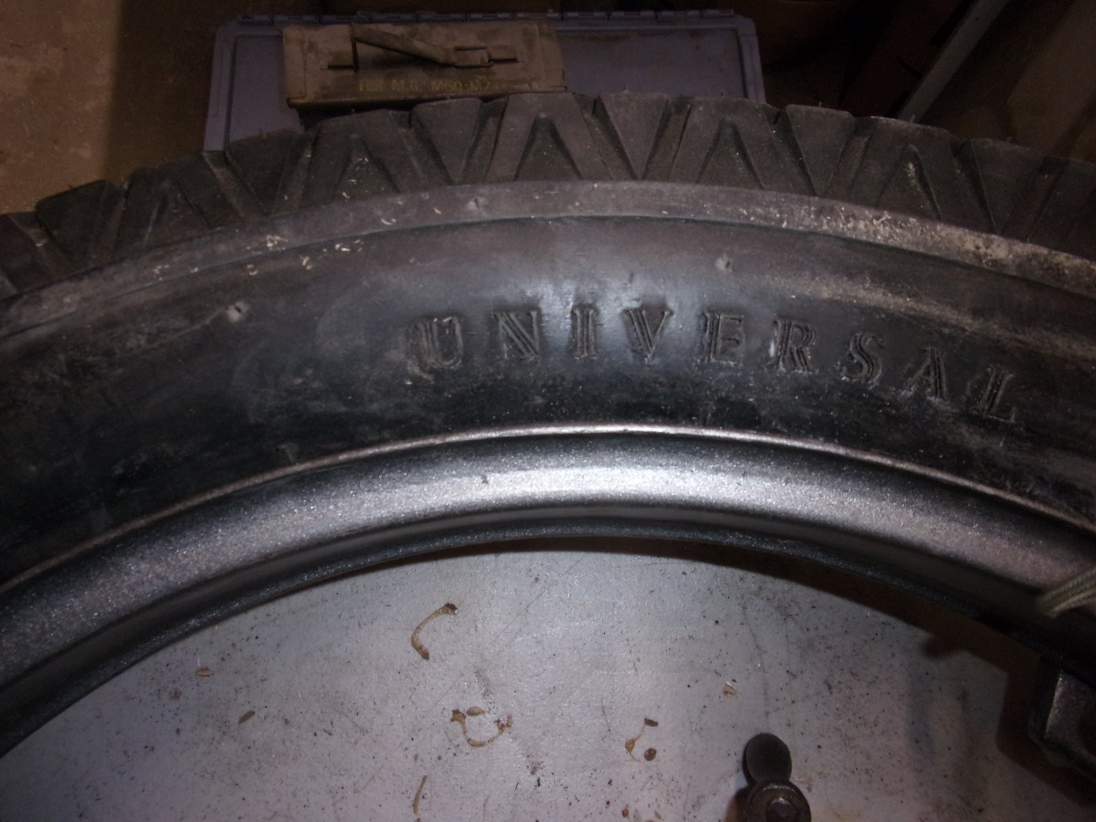 On my previous military Model T, I went with a more aggressive, knobby tread design, but on the ambulance, I went with a more traditional tread design. I've had these on the shelf for a while. Universal tires. Tubes were what came out of the depot hack, all held air and contine to do so.