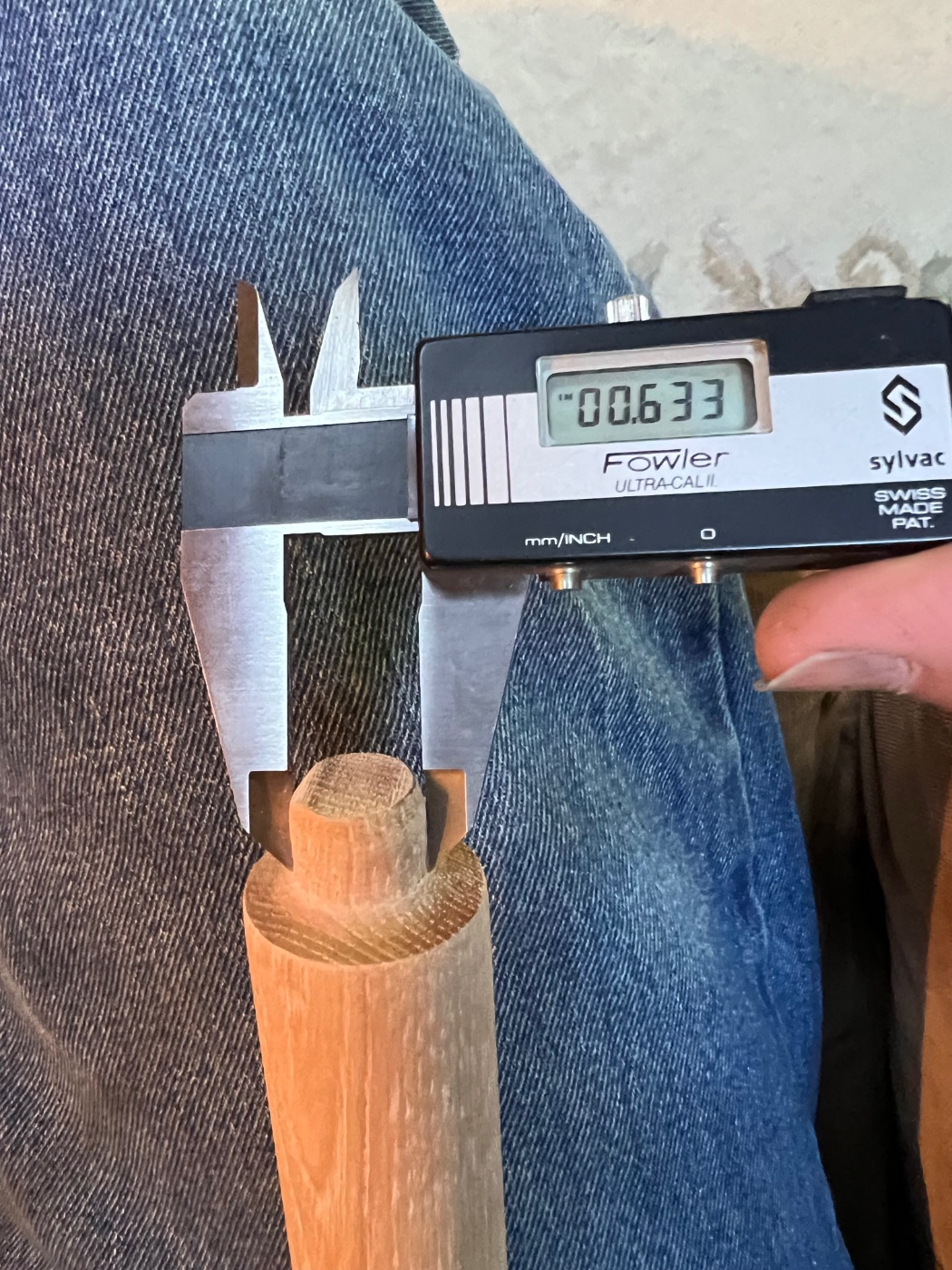 I received a set of 5/8” spokes from Snyder’s this past week. I’m happy at the measurements and form. The tenon measure 0.633”. They are oversized to allow for crush when installing. The tenon on the old spokes measures .618”.