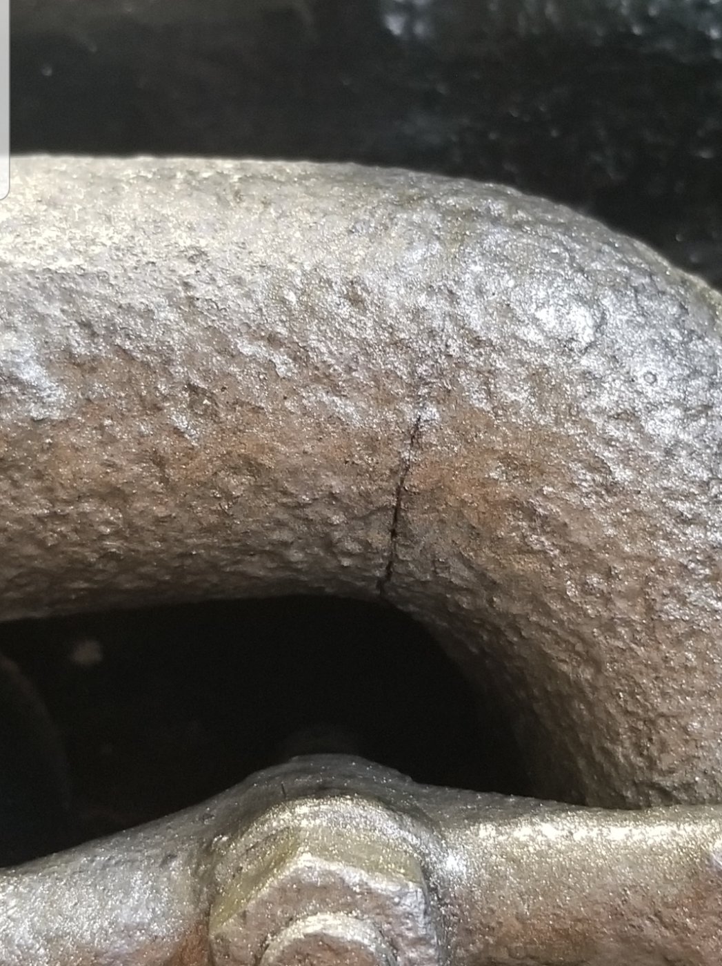 Seeing a very fine line in the manifold, I suspected a crack and proceeded to wire brush and paint anyway. Crack seemed to go away. After running it, I now see that the crack is in fact, a crack.