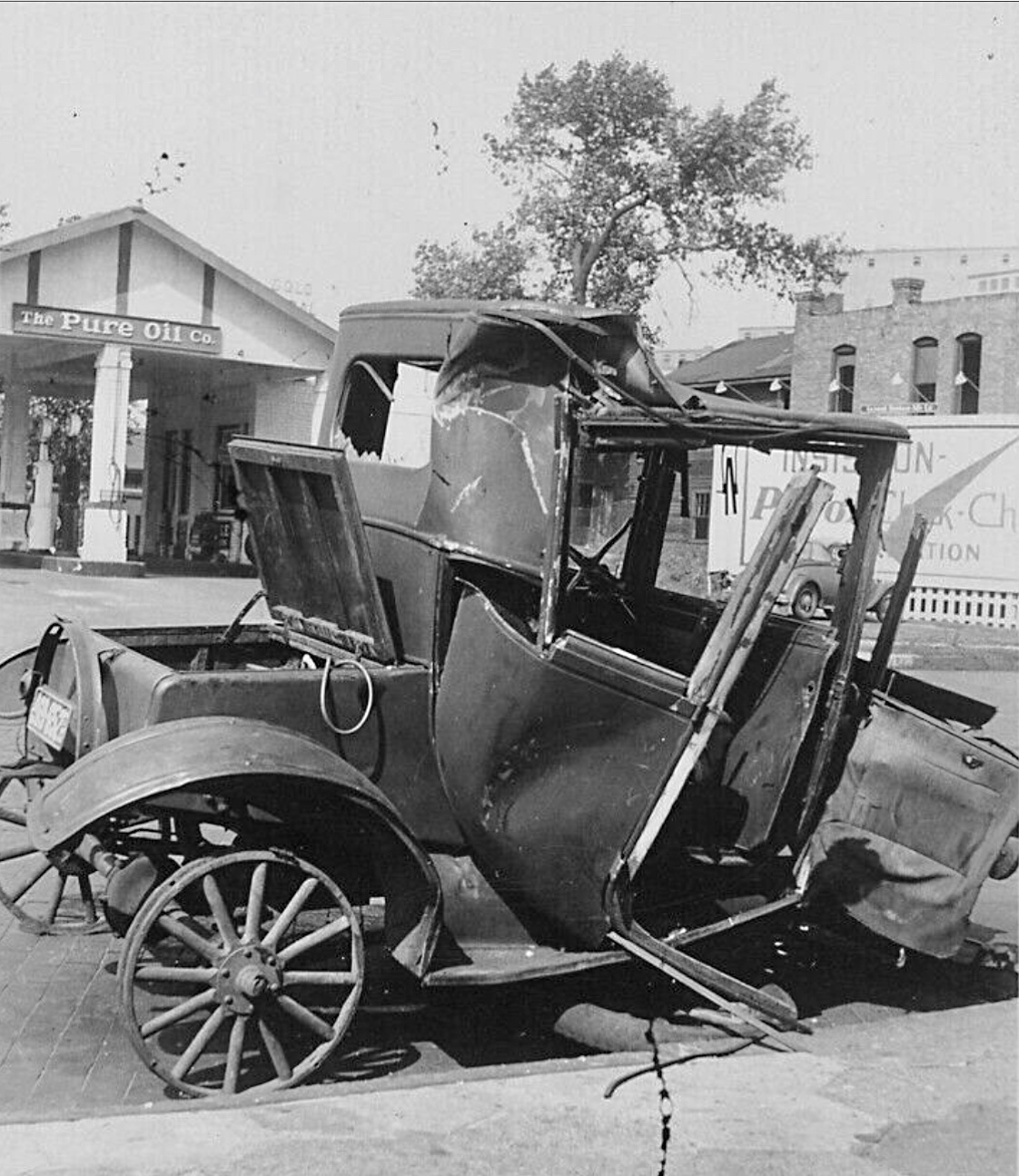 The pictures really shows the old saying “ a piece of tin and a piece of board, put it together and you’ve got a Ford!” Something like that anyway! It’s curious that in the first picture of the Coupe the gas was being siphoned out of the car and the tires were taken off. Saving what you can!