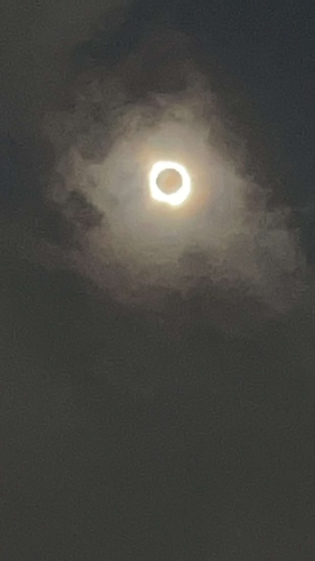 “”totality”” in south central Texas. Wanted to do a little acetylene lighting but heavy cloud cover..No temp drop. No turkeys gobbling. No turtles mating