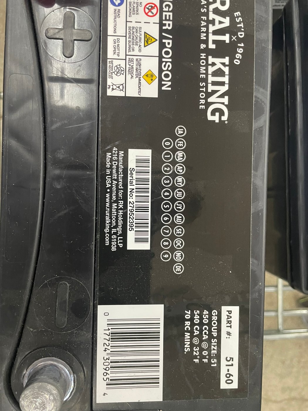 To update everyone on this, we wound-up purchasing a Group 51 series battery (-amongst 4 other batteries) because the Group 51 gave about 180 more CA than the smaller diesel garden tractor battery did. I think this Group 51 battery should fit the 'need' nicely but time will tell I suppose.
