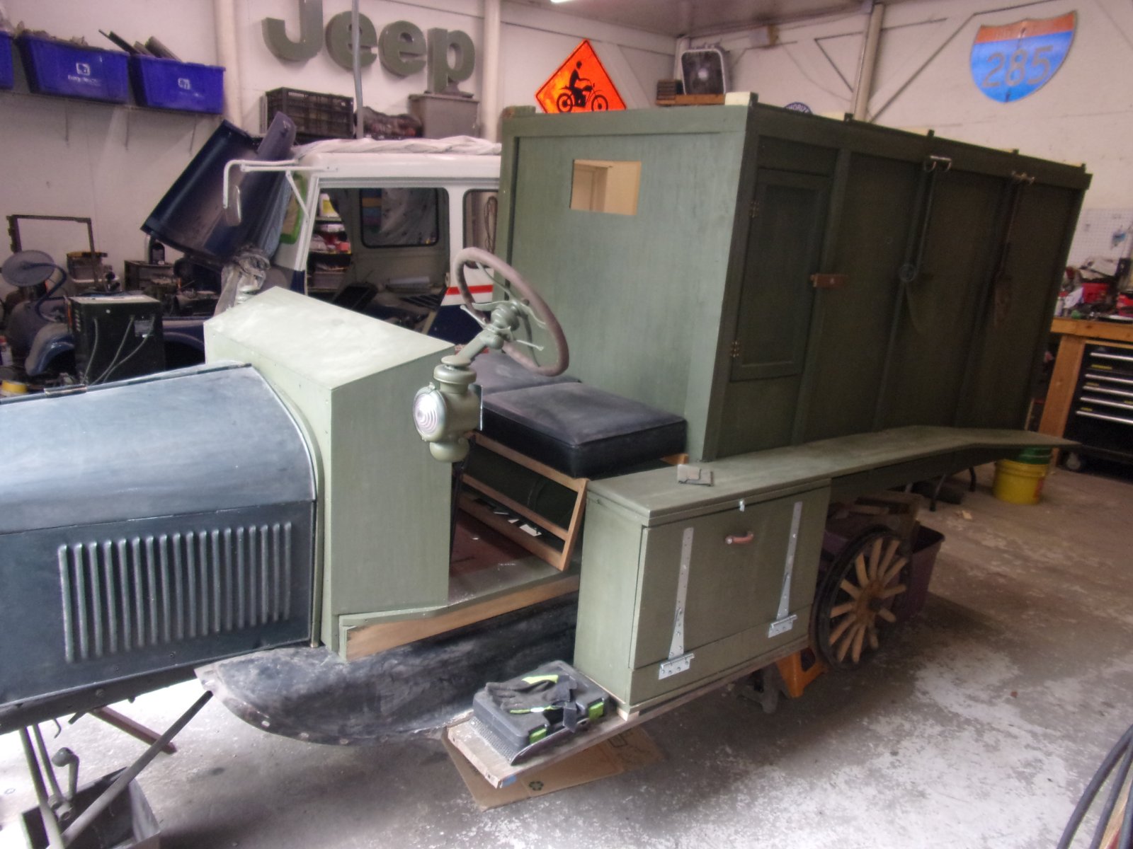 Drats. Probably need to wait until I get fenders back and can bolt them up prior to painting and feel what I got. Since I am using this 26/27 depot hack as my donor vehicle for a 1917 replica ambulance, the bar is not correct for that 1917 look. ?Wonder if I can do something with bolting the headlights onto the feners and eliminating the bar or cobbling up something myself with the tube bender that would have a forward leaning offset to go in front of the shutter. Or, I could go totally military and make some sort of brush guard.