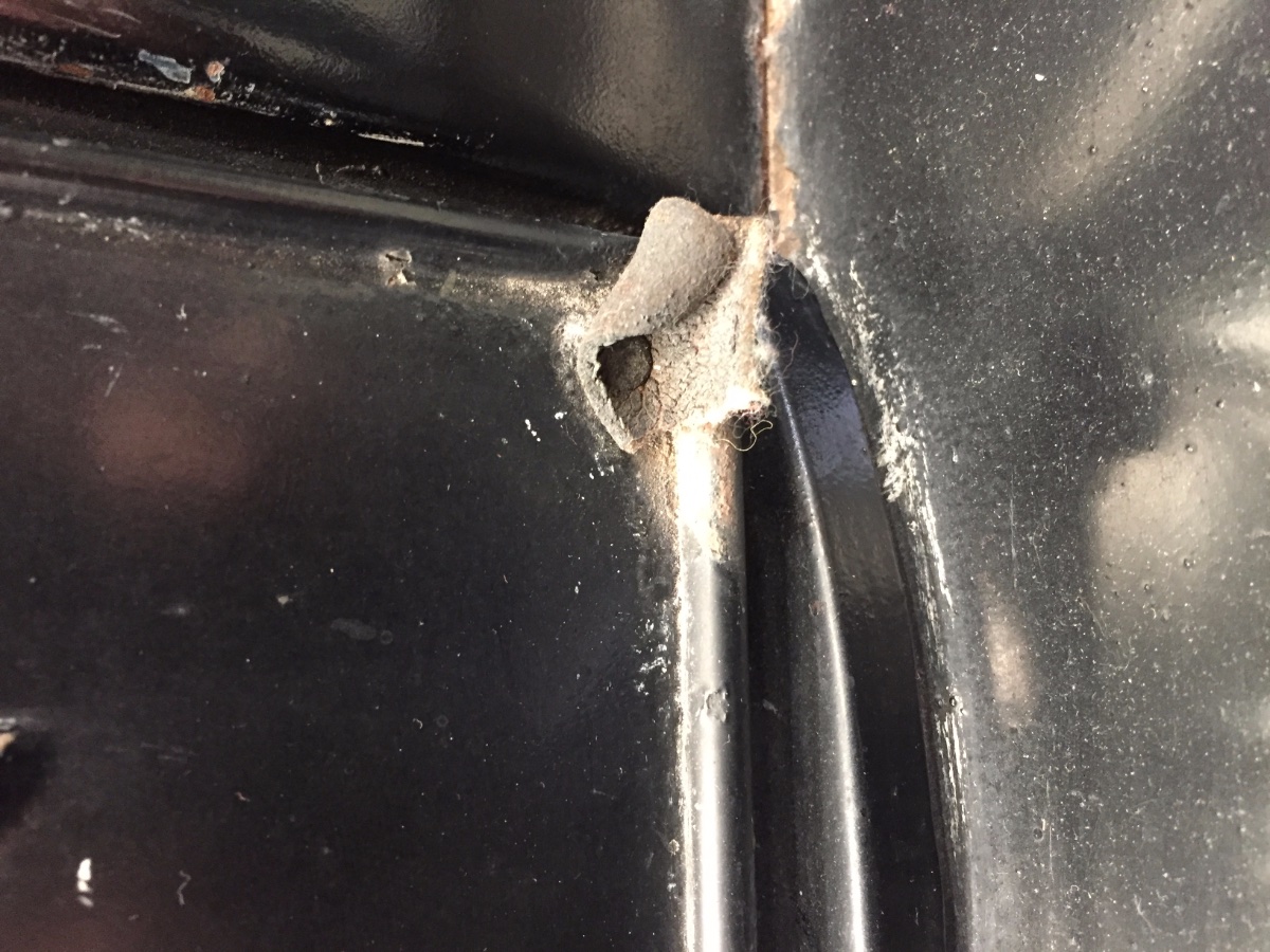 There was a discussion awhile back about the protective hood corners. I have two very original 26-7 hoods here. One has nothing there, no holes, no nothing. The other is drilled and protected JUST at the rear corner. It looks nothing like what the parts houses are supplying. Looks like Hank in Tennessee had it right on the money. Perhaps they only used this on flat firewall vehicles, perhaps the change orders would tell for sure when they started or stopped doing it? One picture shows the leather intact, the other shows just the remaining rivet, more like an old fashioned metal piece you would hold papers together with.