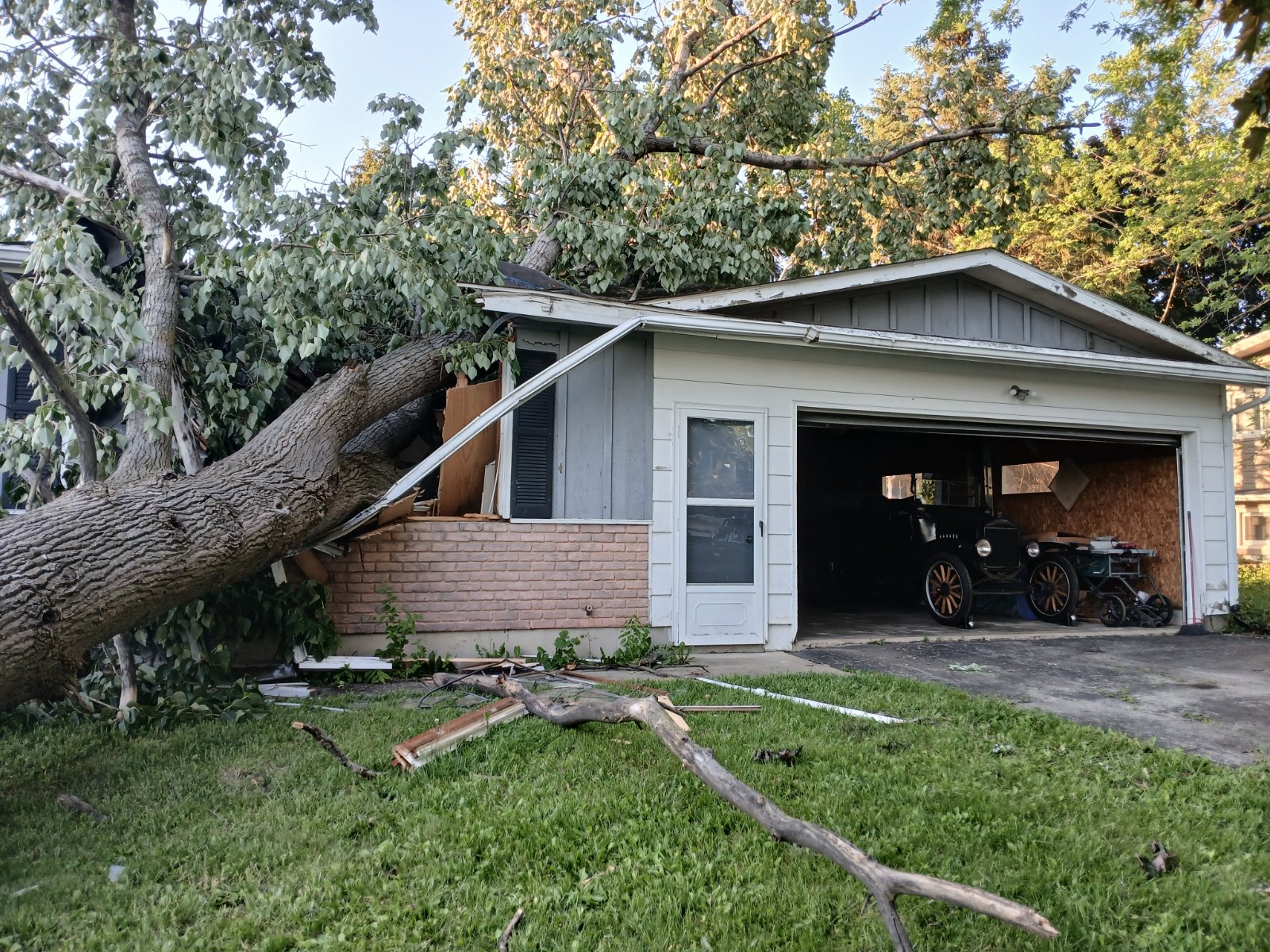 Ouch! The damage to the garage looks serious. Glad your T came out ok. Tim is smart and proactively removed the risk. Years ago I worked for an arborist. When called to clean up storm damage, most times you could see why the tree failed. Roots damaged by construction, stem decay and hollow trunks. Sometimes just the wrong species of tree in the wrong place. Having a knowledgeable person or a certified arborist to assess, trim or remove high risk trees will prevent most property damage from storms.