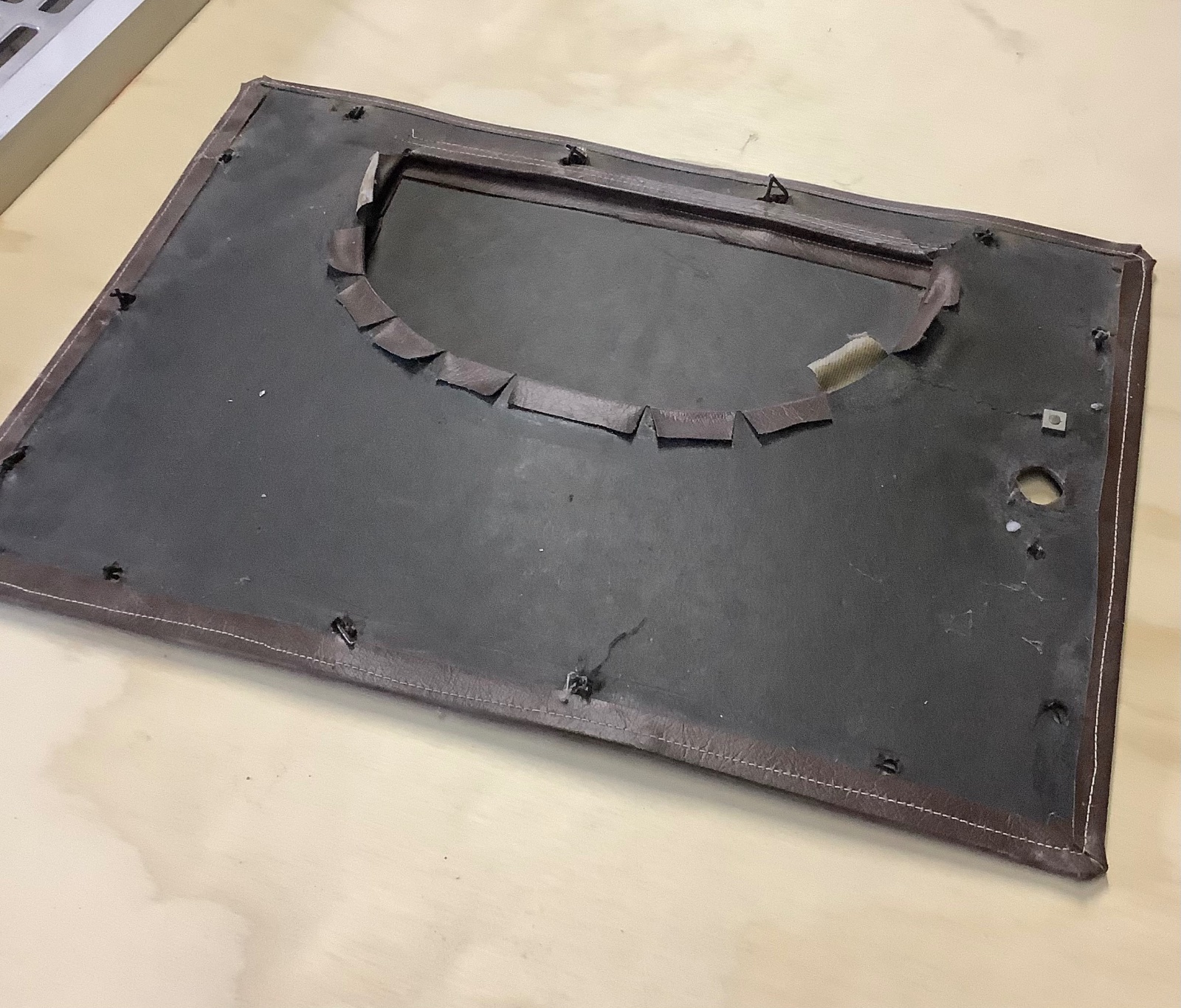 Typical door pocket, the flap is sewn to the door cardboard.