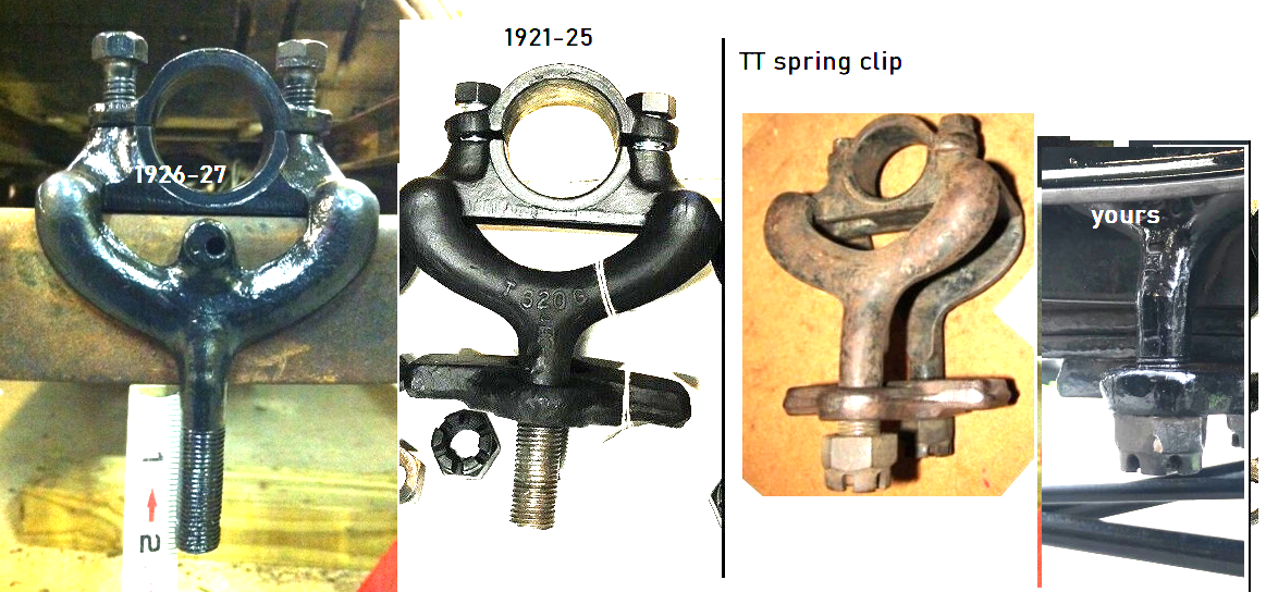 The front spring clip looks short in the threads too. It looks exactly like a TT front spring clip or someone cut off some threads. Does it have a cotter pin hole?