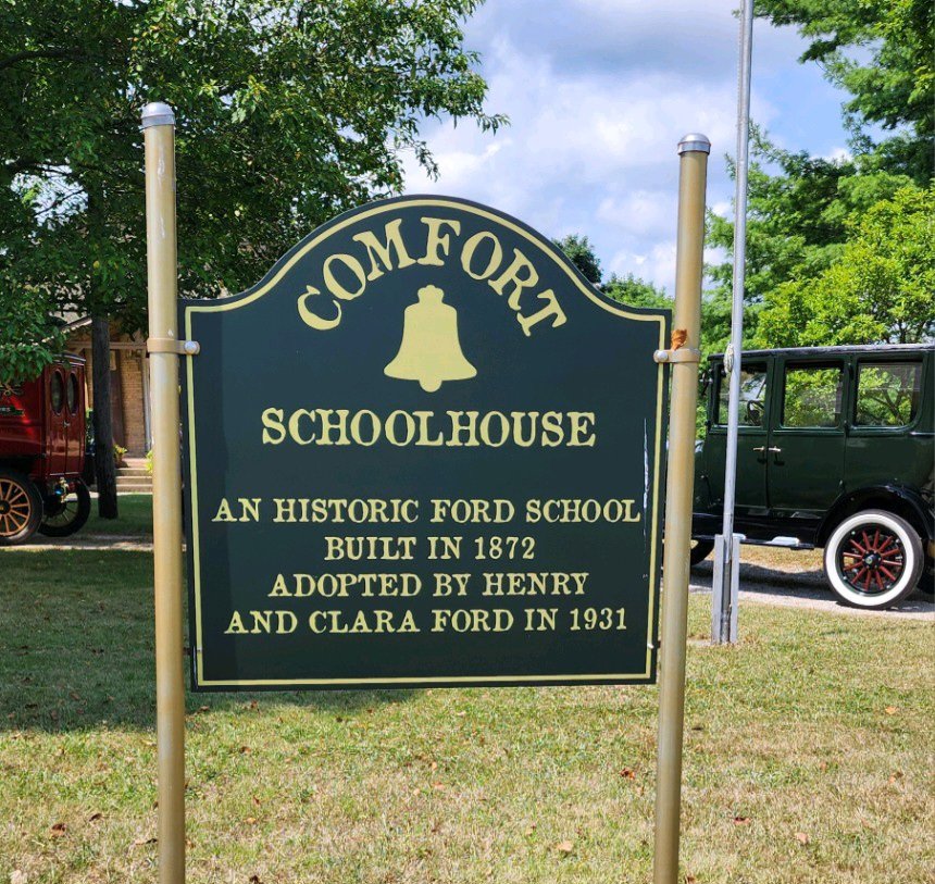 Make Parker...a.k.a. "the other good looking Mike Parker"..(inside joke) of the Maumee Valley Model T club put together a great tour today out of the Sylvania area. 8 cars in the group, we went to Bigs Bar & Pub in Metamora OH for a good lunch. From there we traveled about 20 miles to a great one room schoolhouse just over rhe Michigan border near Tecumseh MI. Henry Ford "adopted" this schoolhouse amongst many others.