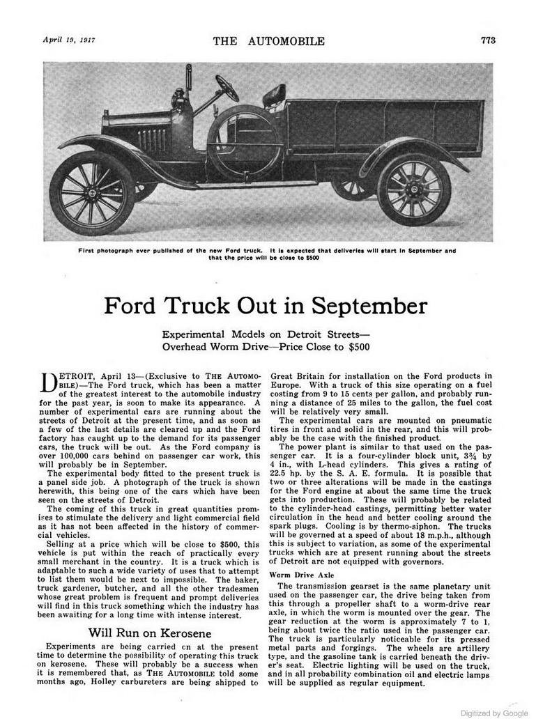 Not being a Ford TT expert, but one who enjoys research, I came across the following two entries from 1918. A year after Ford introduced it's truck. The context of the articles in the auto publications indicate that up to WWI, Ford Autos were adapted, without side suppliers, to be ambulances, trucks, delivery vans, jittneys.