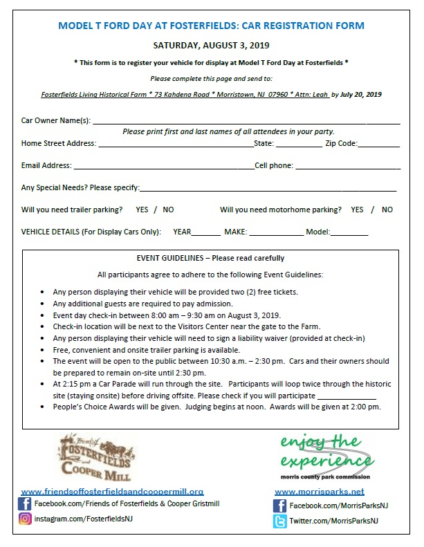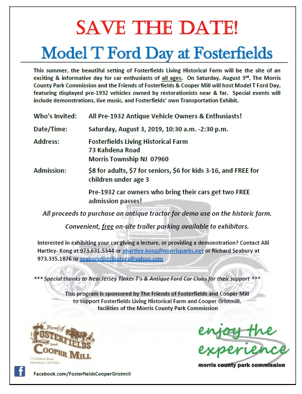 It’s that time of the year again- and we are getting ready for Model T Day at Fosterfields Living Historical Farm. Thank you so much for coming last year, and we hope that you will be able to join us again this upcoming year! Our event this year will be on Saturday August 3rd and open to the public from 10:30 am to 2:30 pm. Registered cars must be on-site by 9:30 a.m. and cars will all leave together following the car parade which will kick off at 2:15. We are pleased again to offer free registration as well as two (2) free tickets to the event for each car registered.