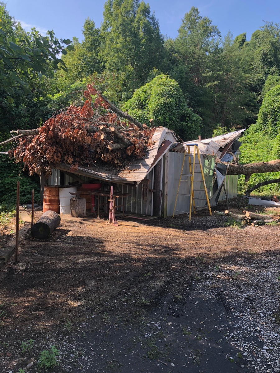 This is not off topic but shows the importance of welding techniques with the right locations. This happen a little over a month ago, a direct hit on my back shed used for items being sandblasted. The neighbors 70 foot plus board leaf oak came down during a micro burst. There is a 1987 Alfa Romeo Spider Quady in there as well, Just a little marring and the passenger side mirror took a hit.