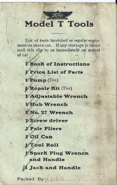 Here is documentation that Ford was suppling jacks in 1913, note it states "and handle" for the jack. ALSO, it shows Spark plug wrench and handle, that refers to the T2178 style plug wrench that was supplied into 1913 (see photo).