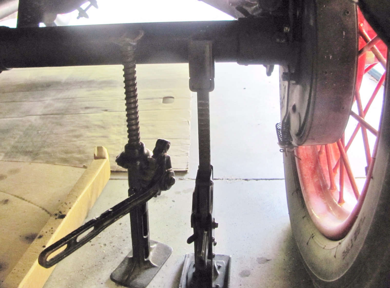 Arnie, at last a bit of logic! Spring height/number of leaves has nothing to do with axle beam height. Only the raising of the spindles on the 26-7 cars does. Again, the flip top has nothing to do with using any jack under the front axle. It is used to make up the difference in height when using the jack under the back axle.