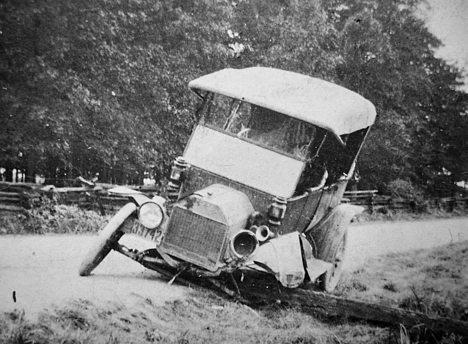 Next to last looks like a post is down next to the left front wheel. Maybe they hit it.