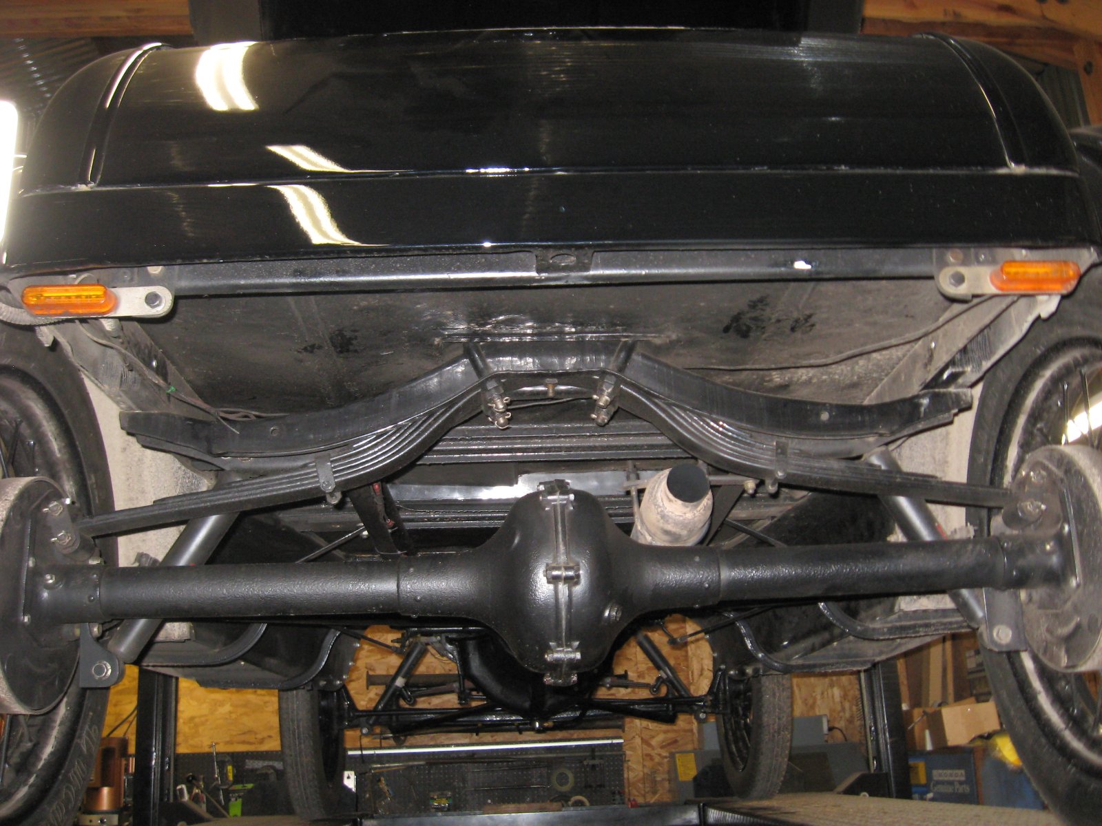 I believe O'Reilly's has a selection of size adapters, clamps, etc. My T has a glass pack of some kind on it, and it works well. No popping back on downhills and it has a pleasant sound, though it probably isn't quite authentic. Longer mufflers will be quieter, and putting a short tailpipe on the muffler will further quiet it. The muffler on mine is in the stock location, and I put a tailpipe on it that's about 16" long.