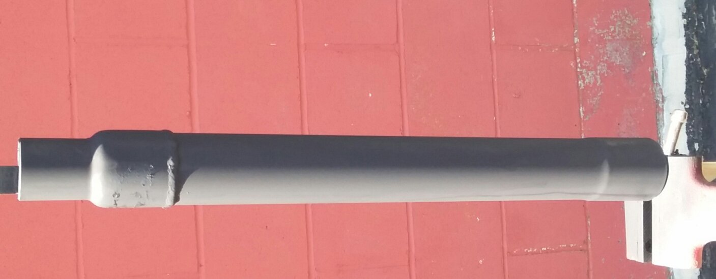 inches of two inch pipe, with another inch and a half to two inch flare turned around with the small