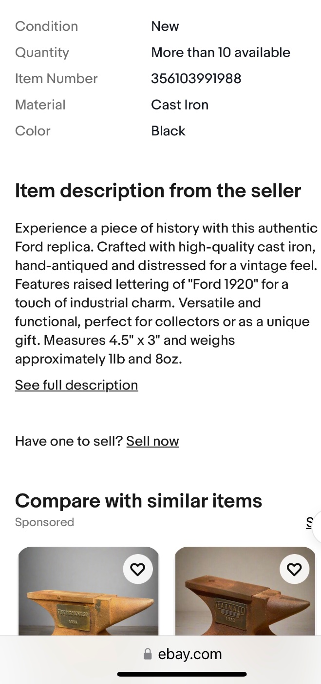 Would anyone have one of these anvils or know the history behind why this one was made with Ford 1920 on it in raised text?